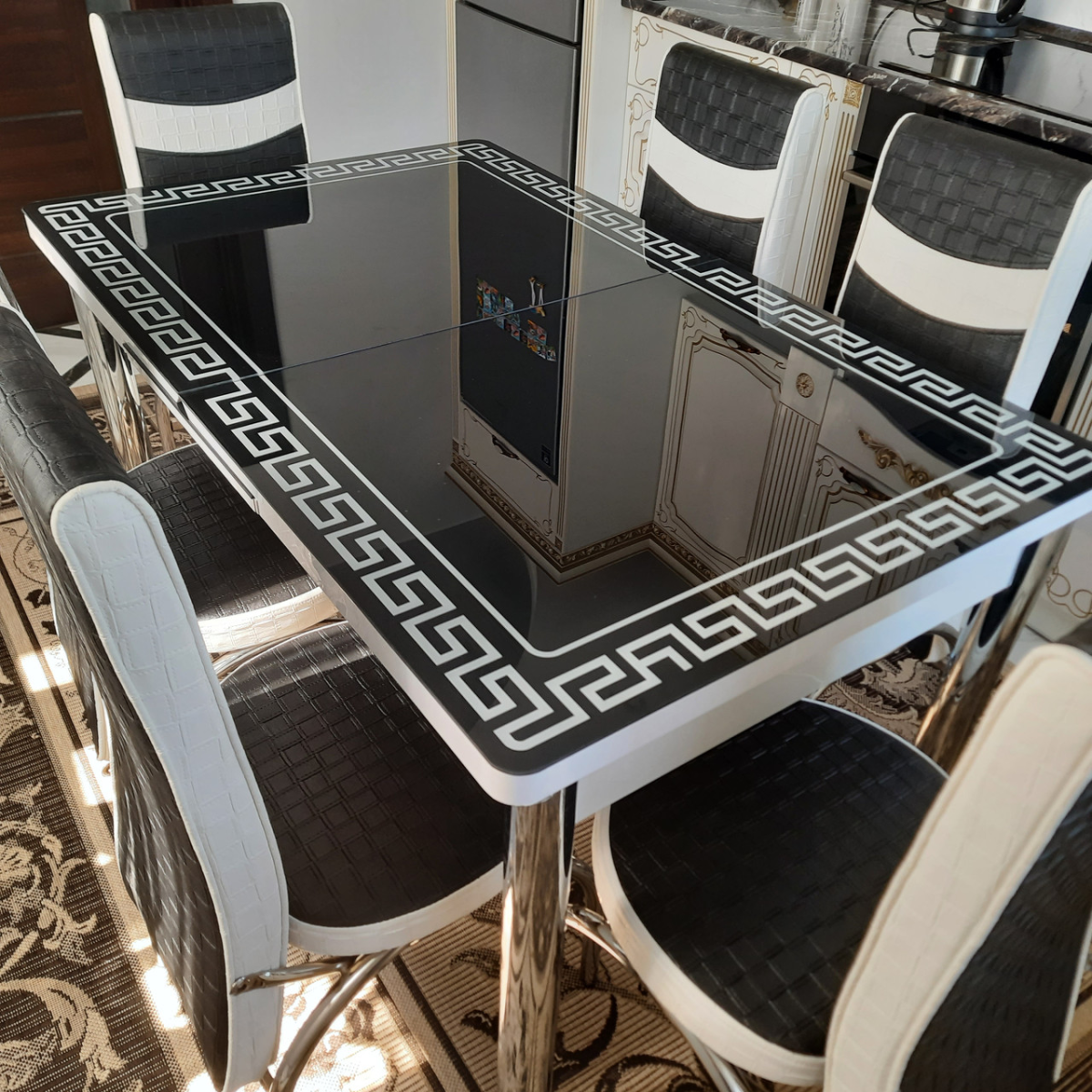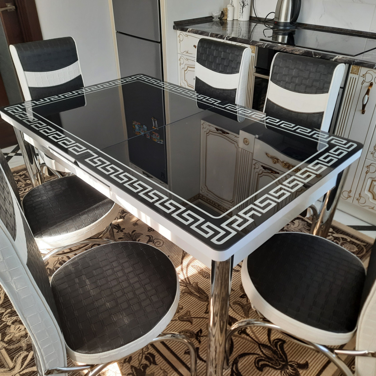 Комплект меблів для кухні з оригінальним декором! Розкладний стіл (130 см (+40 см) * 80 см) і 6 стільців!