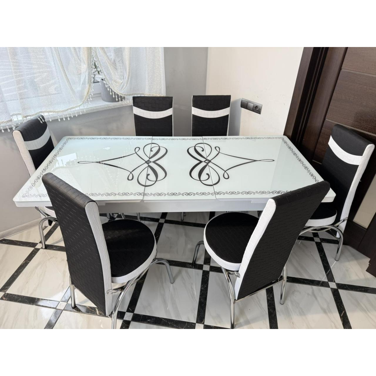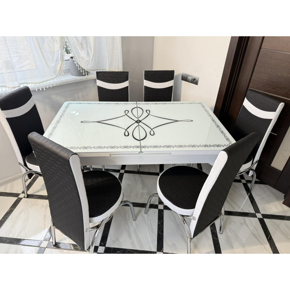 Комплект меблів для кухні з оригінальним декором! Розкладний стіл (130 см (+40 см) * 80 см) і 6 стільців!
