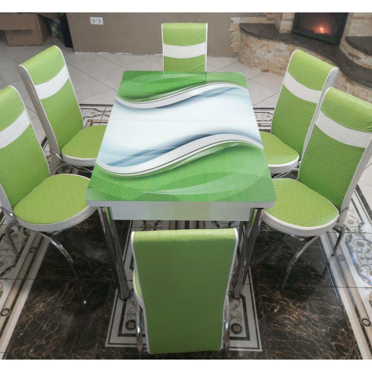 Комплект меблів для кухні з оригінальним декором! Розкладний стіл і 6 стільчиків!