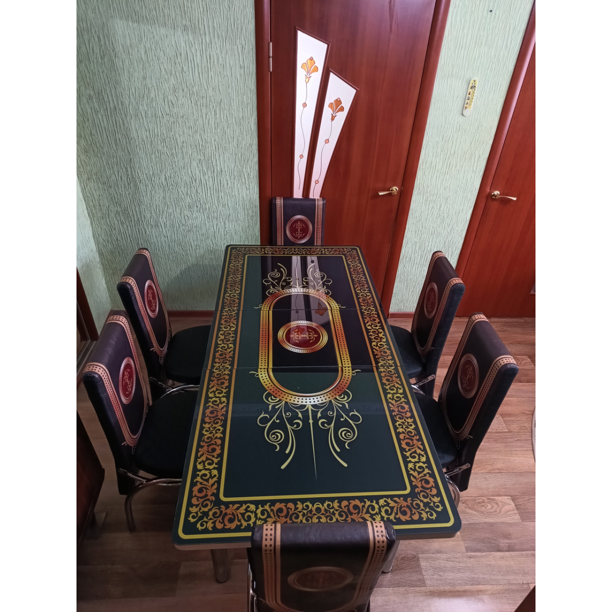 Комплект меблів для кухні з оригінальним декором! Розкладний стіл (130 см (+40 см) * 80 см) і 6 стільців!