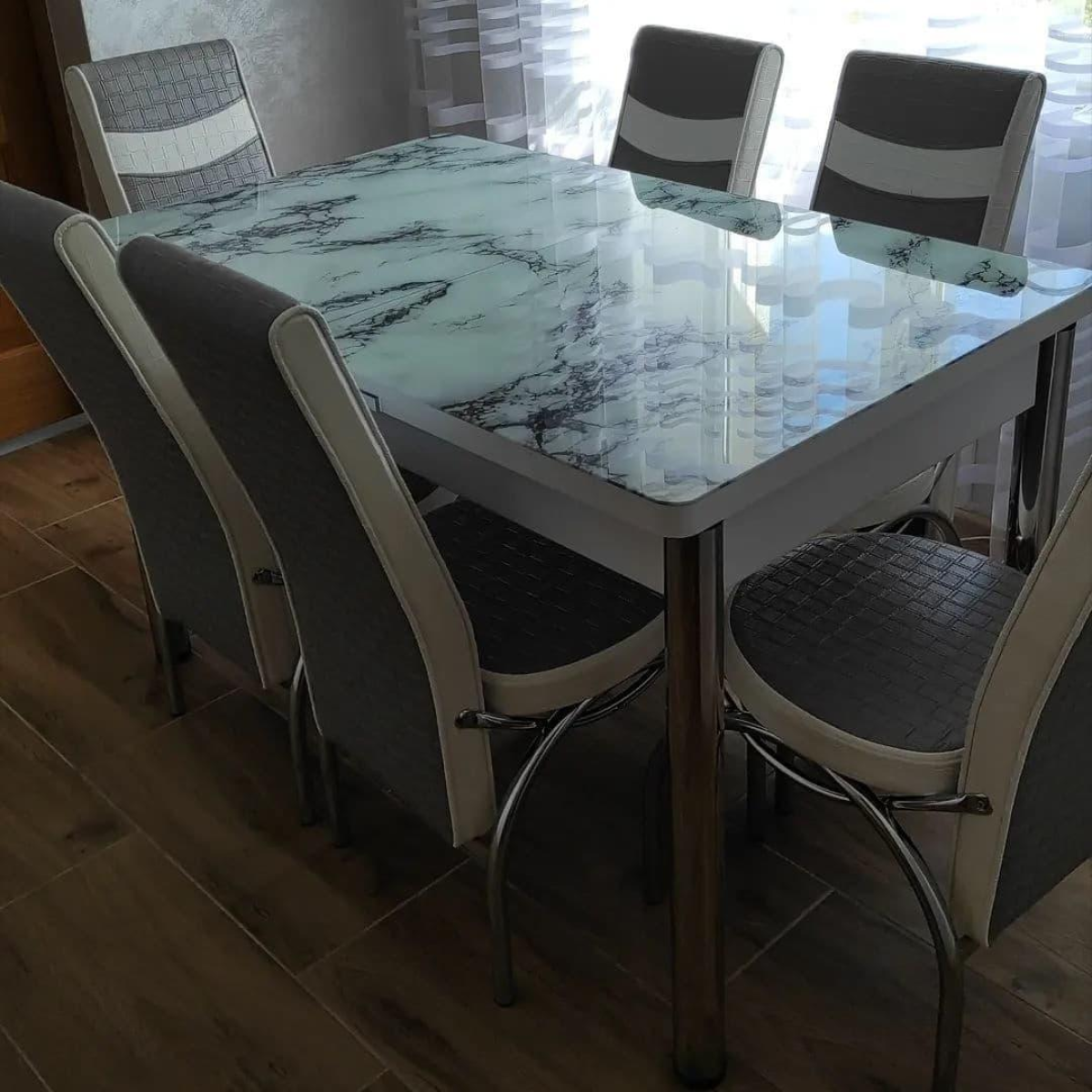 Комплект меблів для кухні з оригінальним декором! Розкладний стіл і 6 стільчиків!