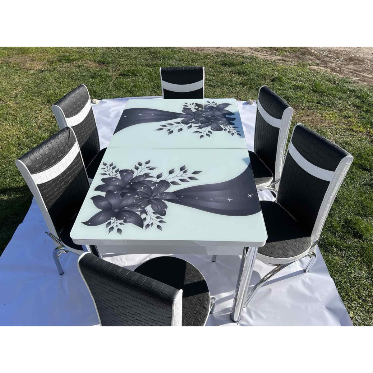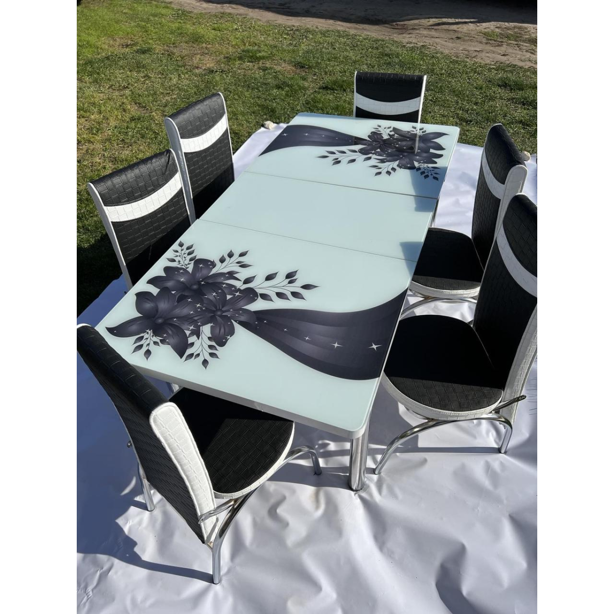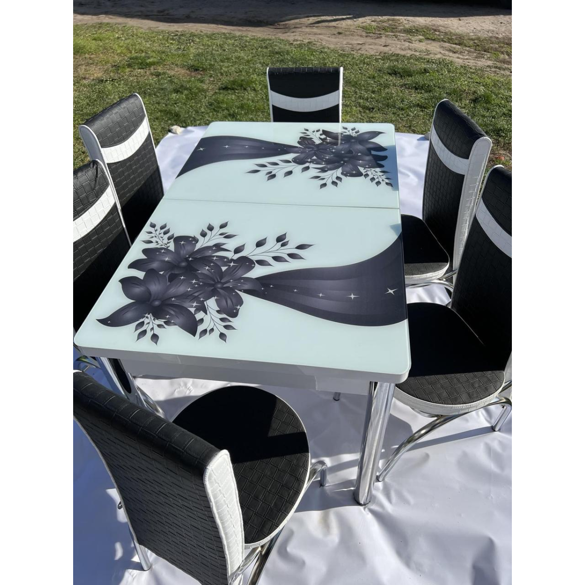 Кухонний стіл + 6 стільців. Гартоване скло. Розмір стола 130*80 см + 40 см ТУРЦІЯ