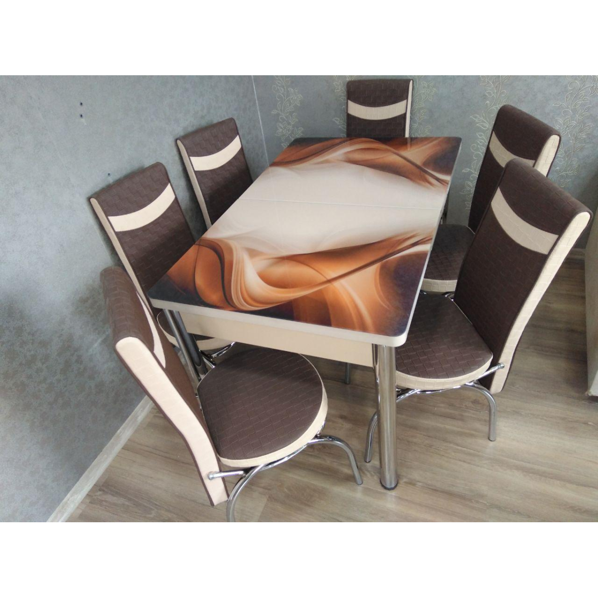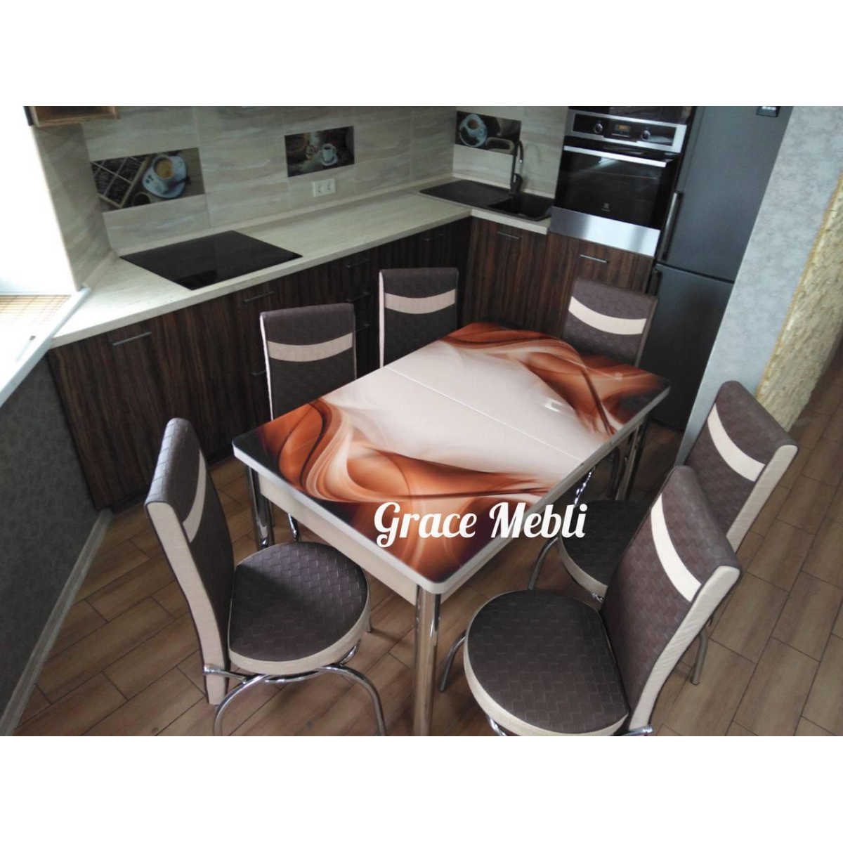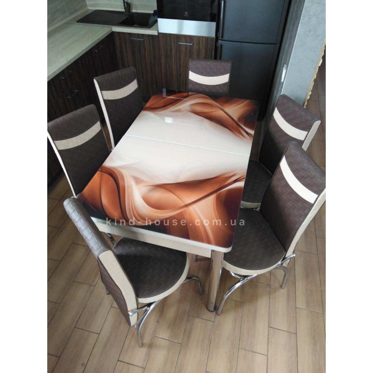 Комплект меблів для кухні з оригінальним декором! Розкладний стіл і 6 стільчиків!