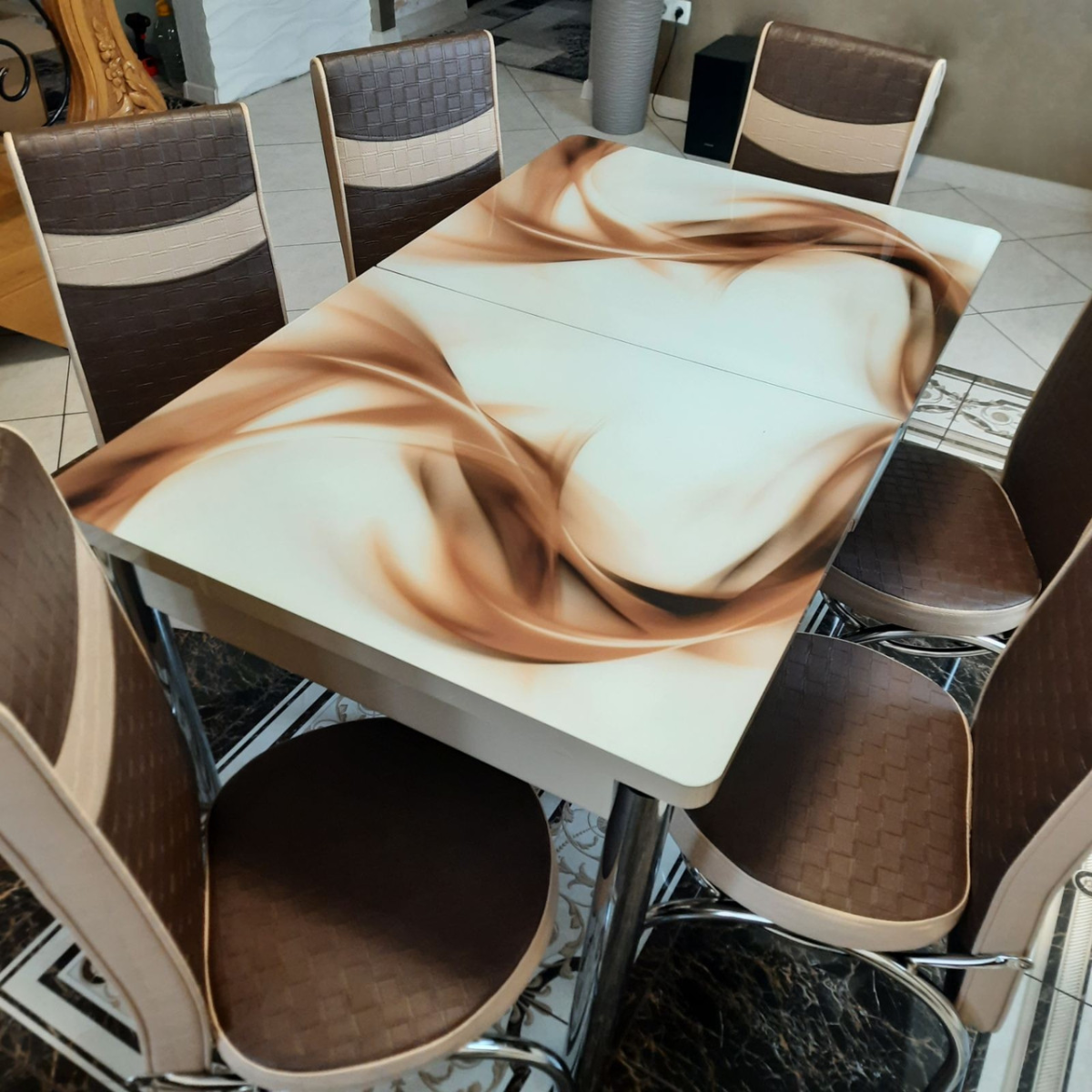 Комплект меблів для кухні з оригінальним декором! Розкладний стіл і 6 стільчиків!