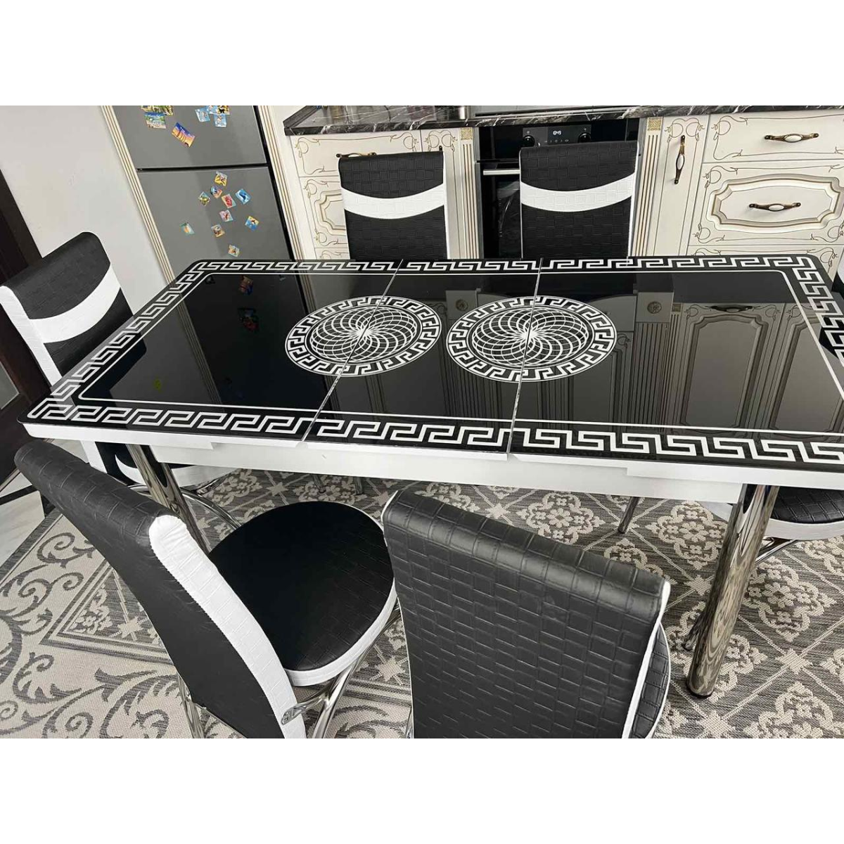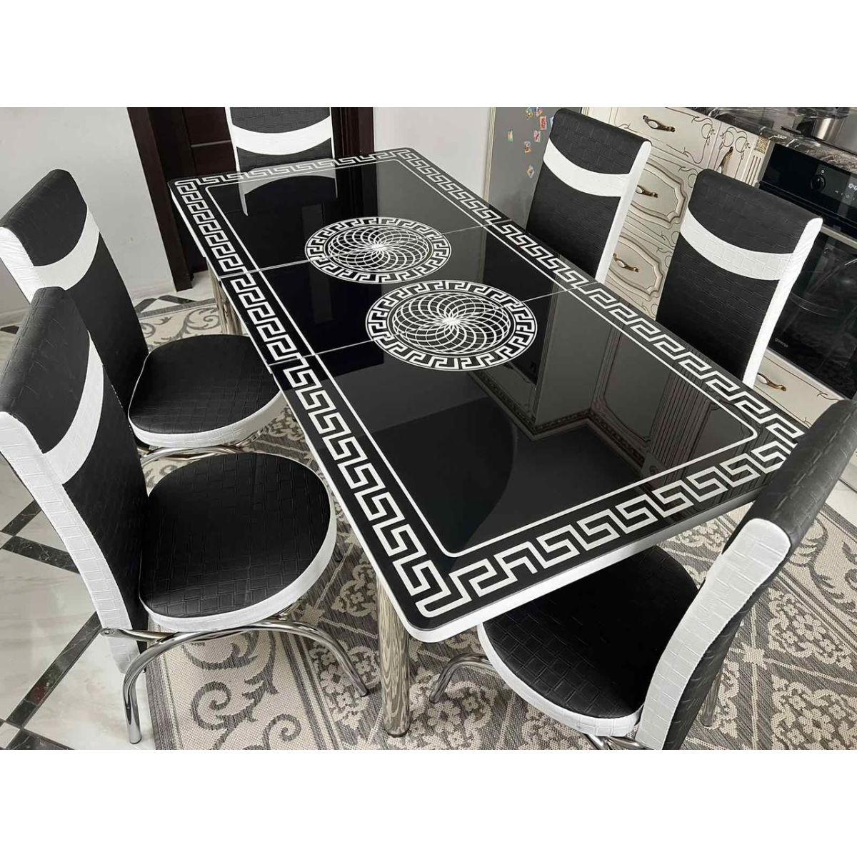 Обідні комплекти. Розкладний скляний стіл і 6 стільців Туреччина