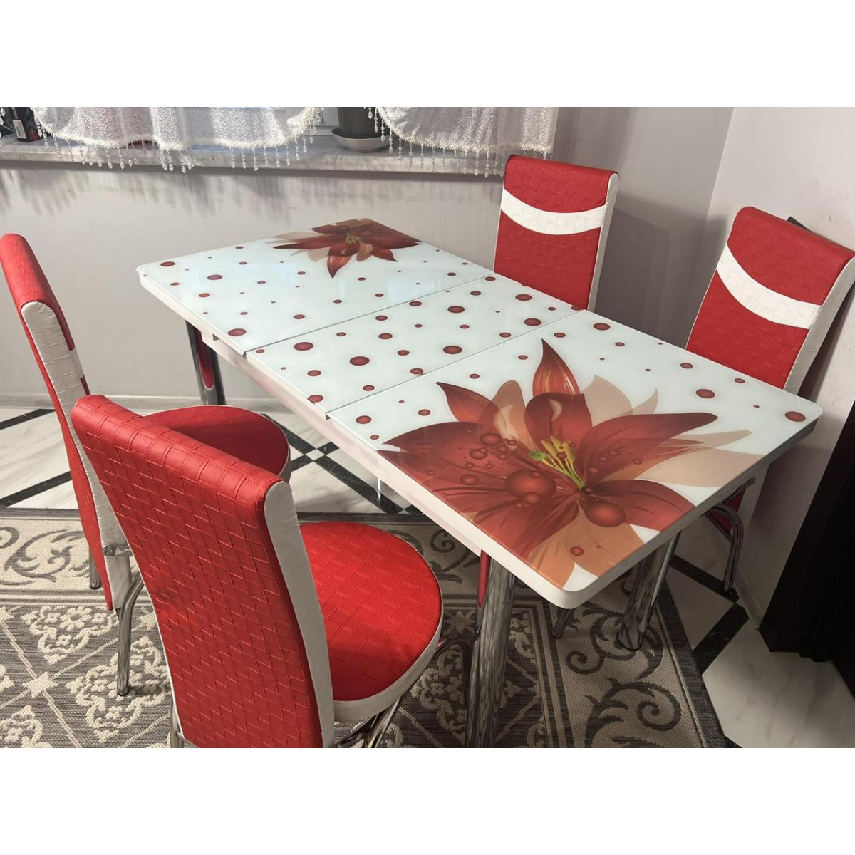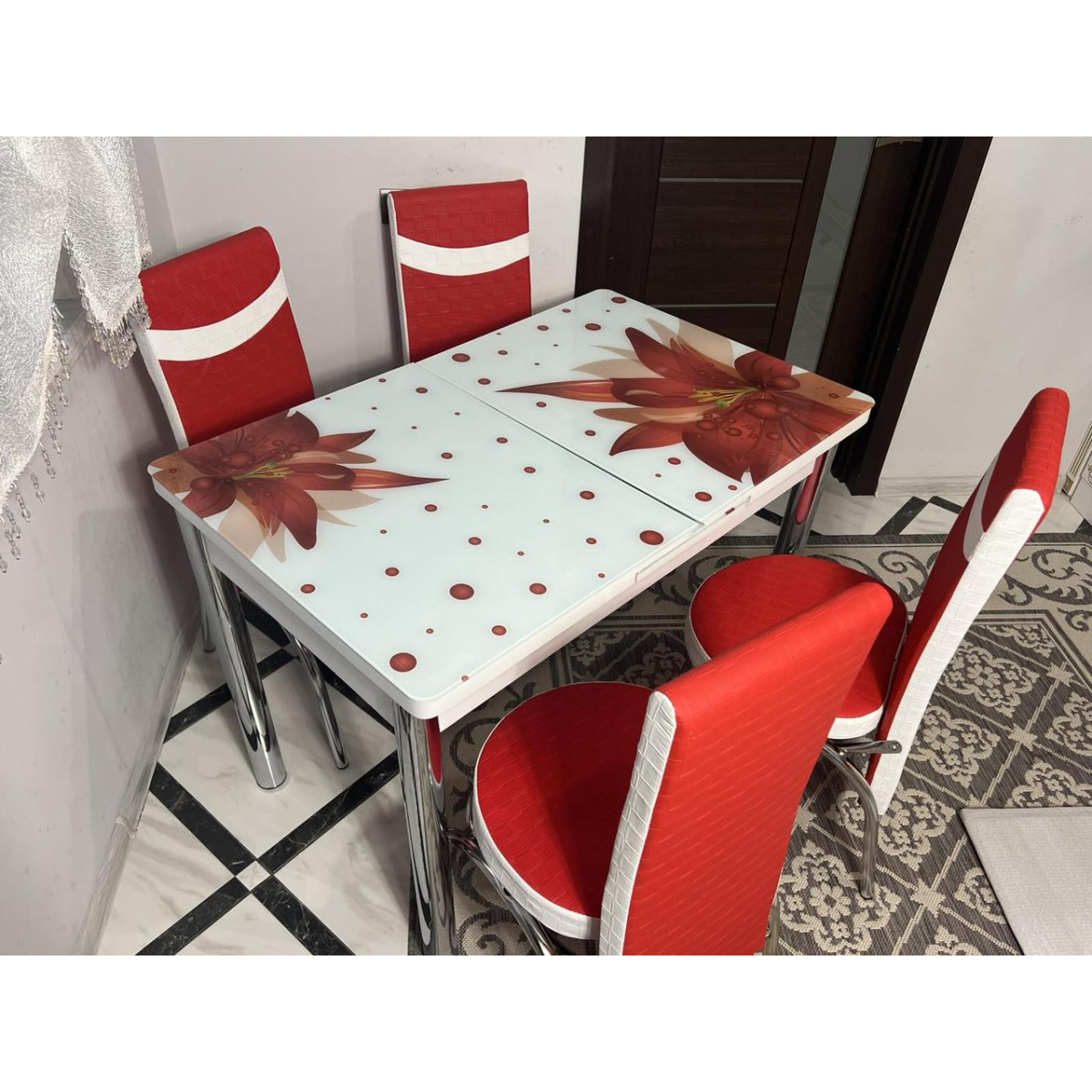 Комплект стіл і 4 стільці. Туреччина. Скляний стіл зі стільцями на кухню. Розмір столу 110*70