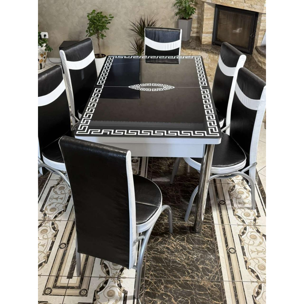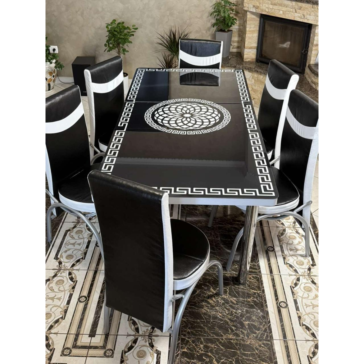 Комплект меблів для кухні з оригінальним декором ! Розкладний стіл (130см(+40см) *80см) та 6 стільців!