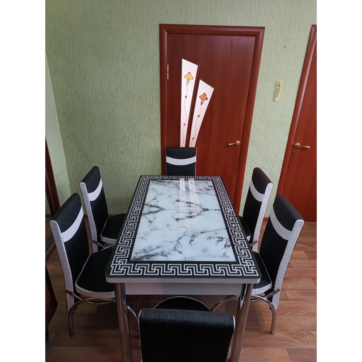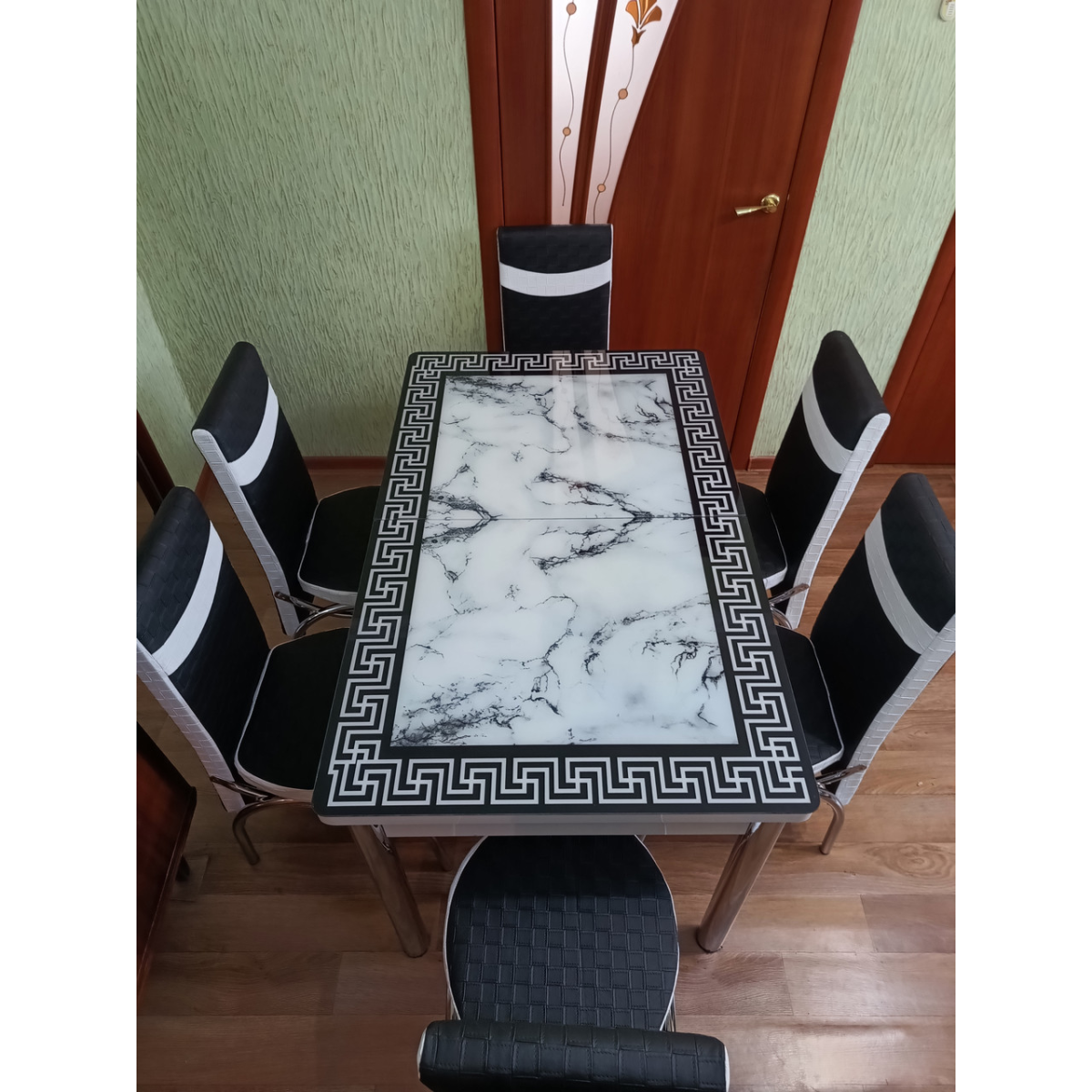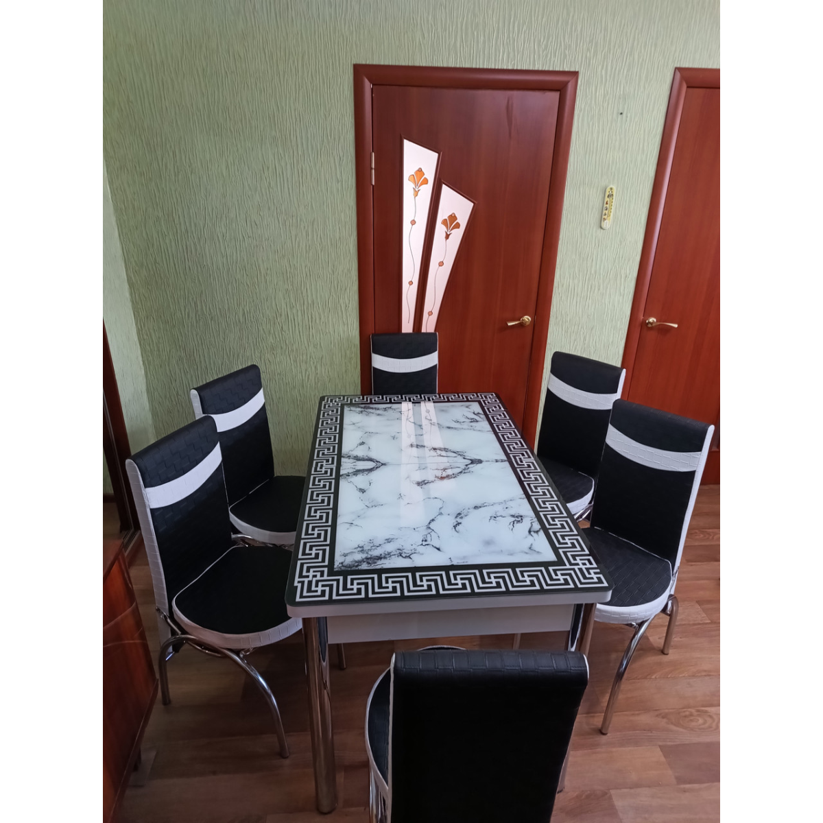 Комплект меблів для кухні з оригінальним декором! Розкладний стіл (130 см (+40 см) * 80 см) і 6 стільців!