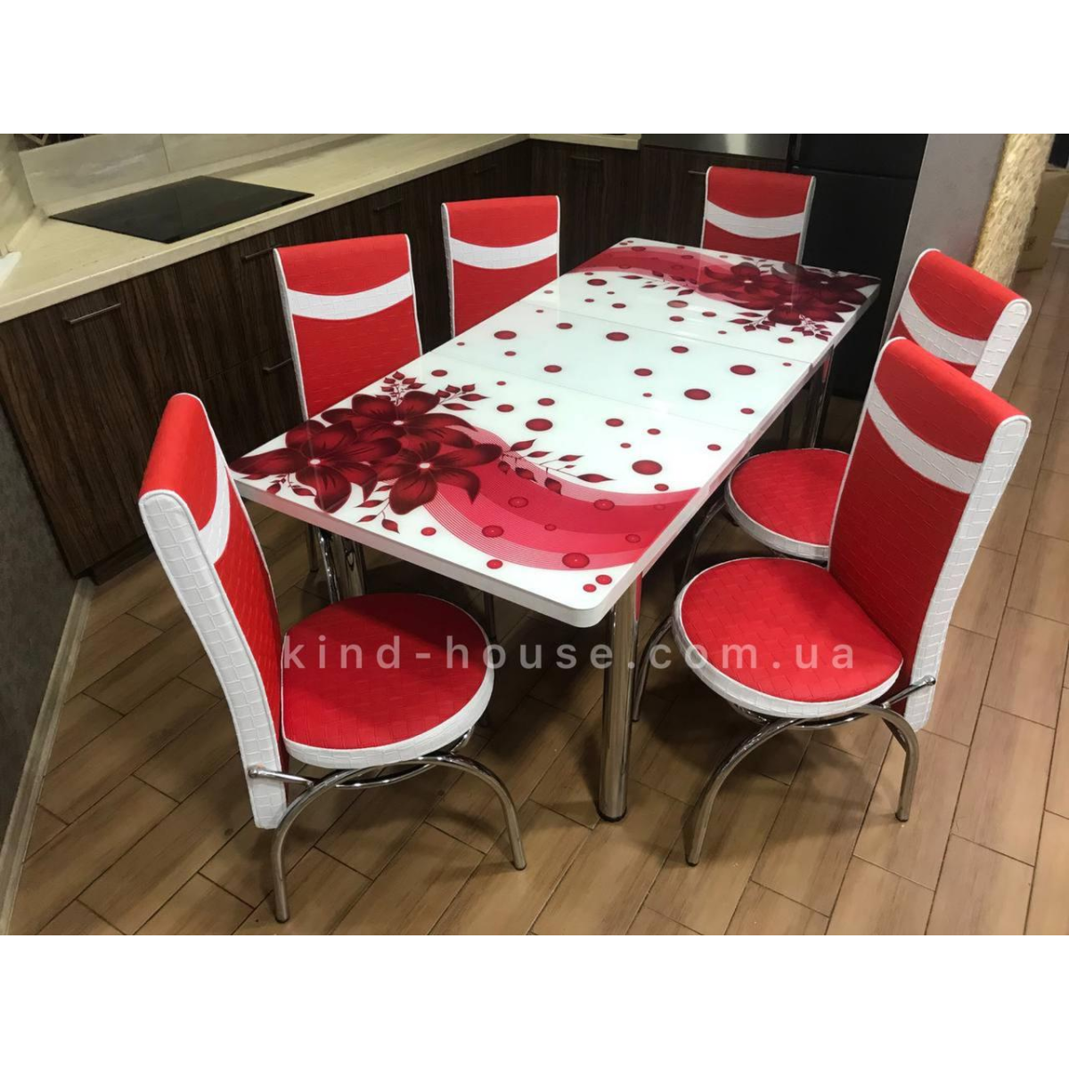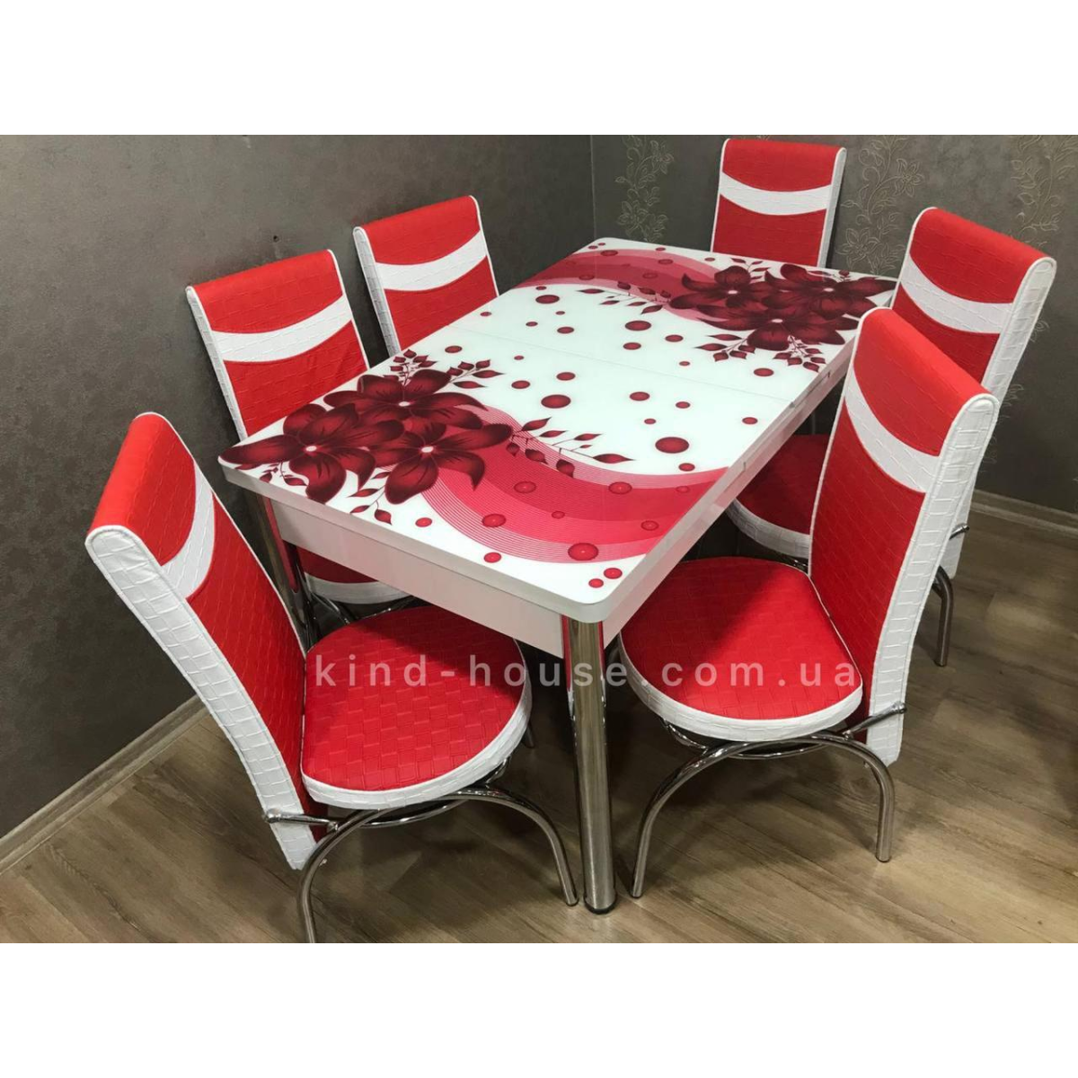 Комплект меблів для кухні з оригінальним декором ! Розкладний стіл (130см(+40см) *80см) та 6 стільців!